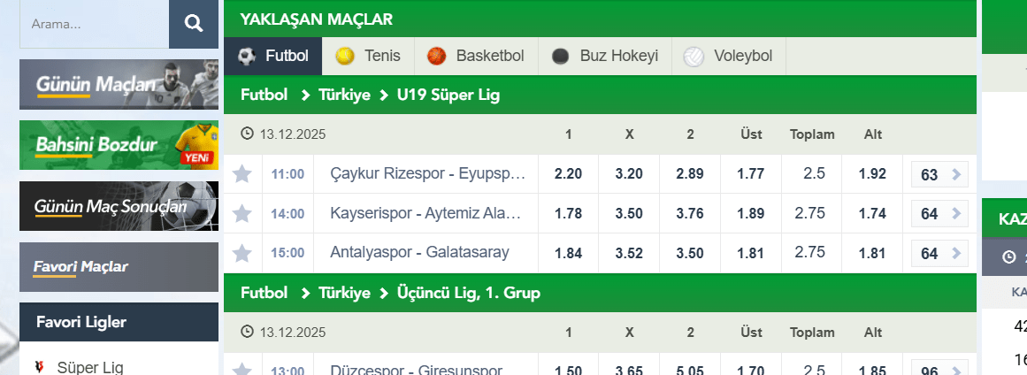 Futbol branşı dinamik yapısı gereği canlı bahisler için en ideal spor dallarından biri sayılmaktadır. Sahadaki taktiksel hamleler ve oyuncu değişiklikleri oranları saniyeler içerisinde kökten değiştirmektedir. Tipobet canlı bahis paneli üzerinden maçın her anını takip ederek anlık fırsatları hızla yakalamaktasınız. Takımların baskı kurduğu veya savunma disiplinini kaybettiği anlarda doğru tercihi yaparak kasanızı güçlendirmektesiniz. Bu arada hızlı kupon onay sistemi sayesinde saniyelerin bile kritik olduğu anlarda oran değişimlerinden etkilenmemekteyiz. Böylece maçın sonucunu beklemeden ilk yarı bahisleri ile kısa sürede karlı sonuçlar elde etmektesiniz. Hemen şimdi platformun sunduğu bu yüksek adrenalinli kazanç sistemini bizzat test ederek farkı görmekteyiz.